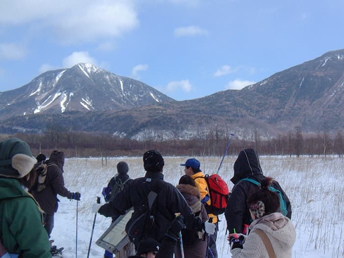 ツアーの舞台は、冬限定コースのダケカンバが多い湯元の森と、湯ノ湖が見下ろせる石楠花平。