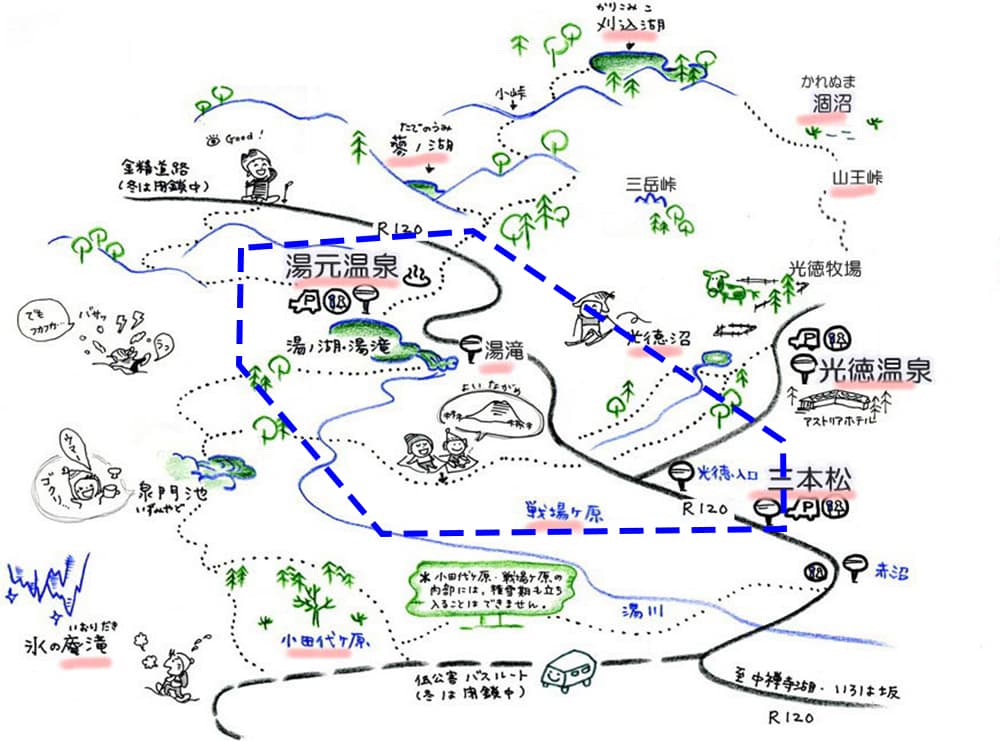 | 集合・解散 | 湯元温泉バスターミナル(グーグルマップ) |